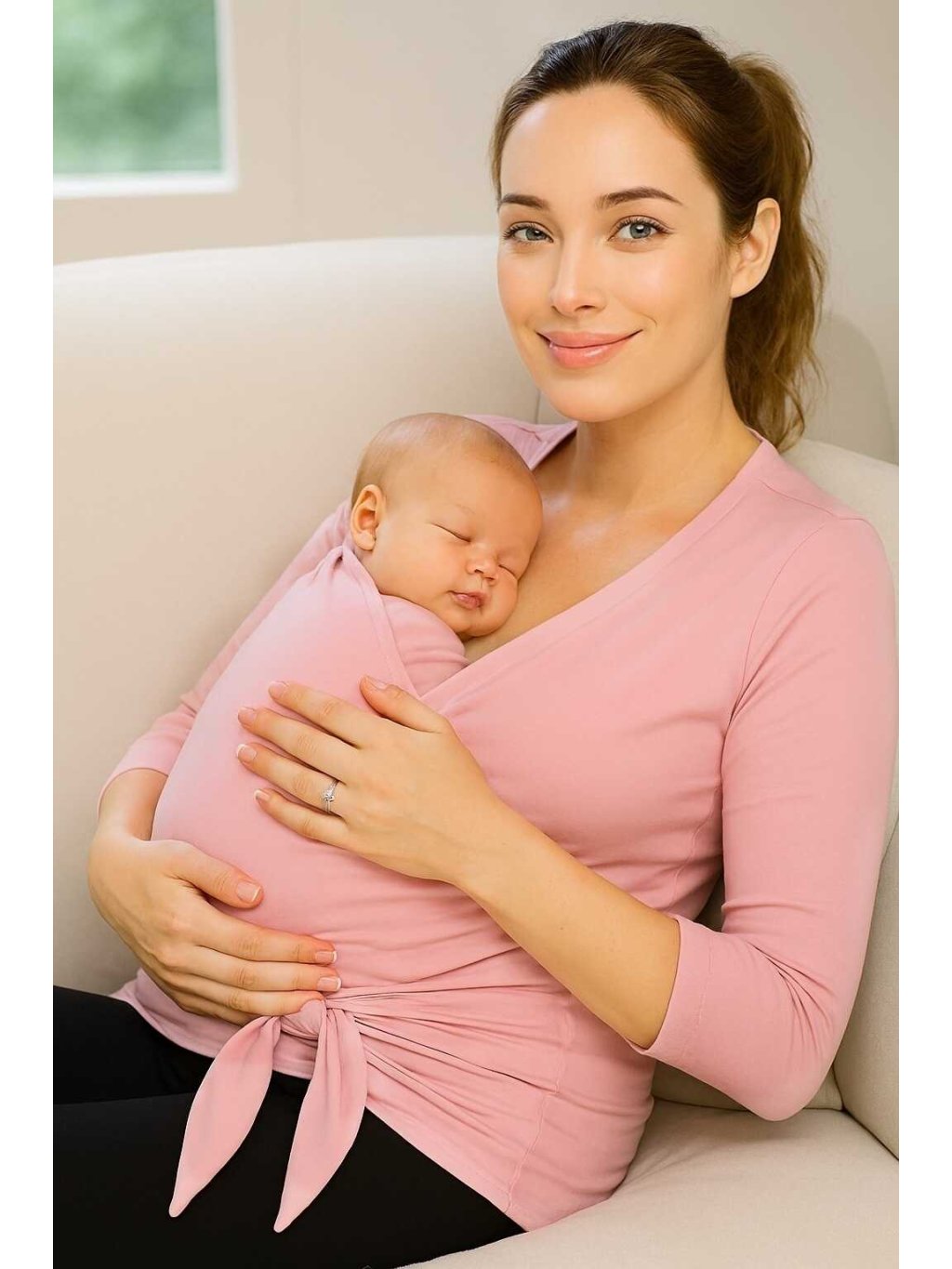 Zavinovací tričko na klokánkování Emberlyn – růžové bavlněné, 3/4 rukáv
