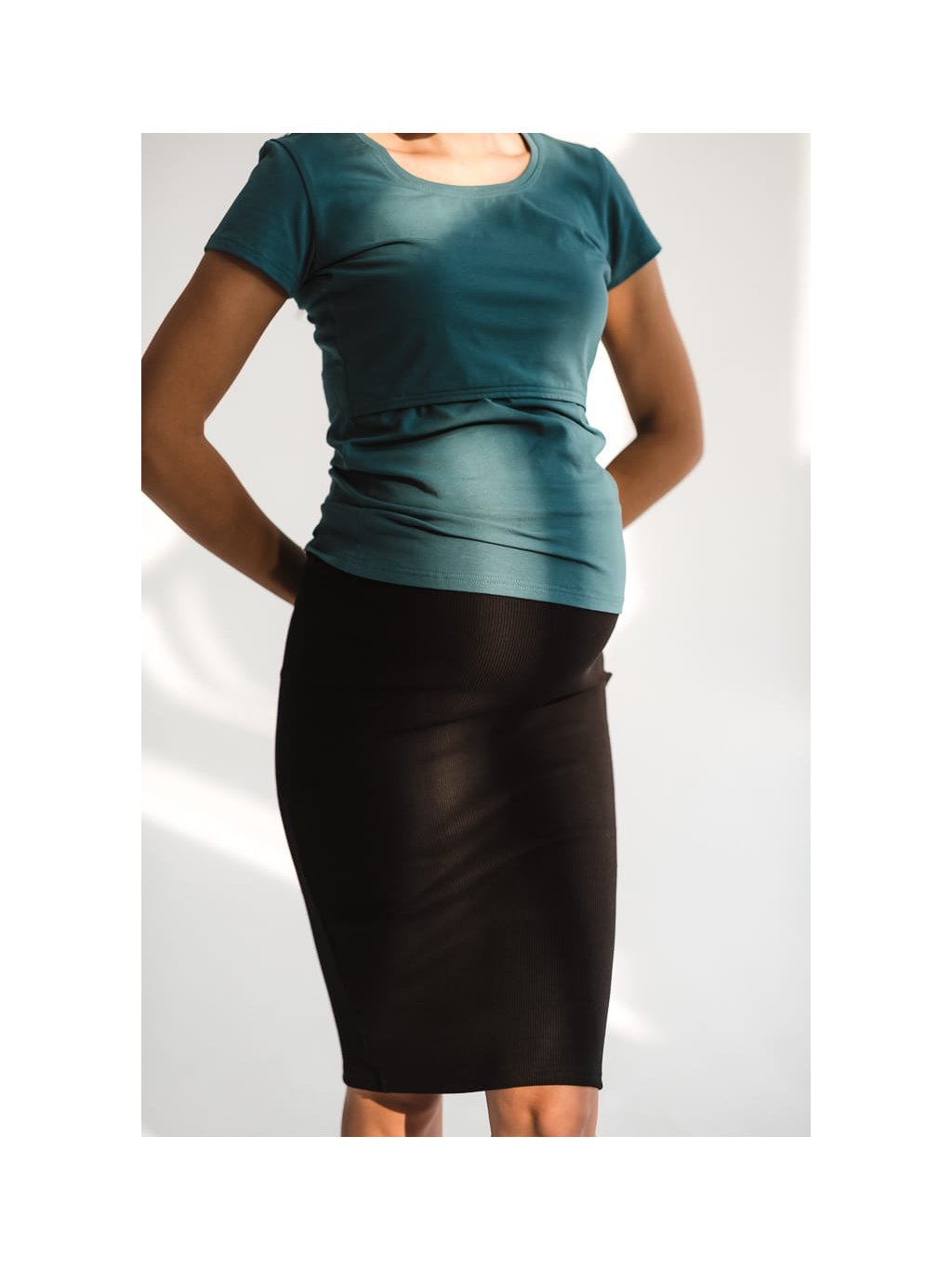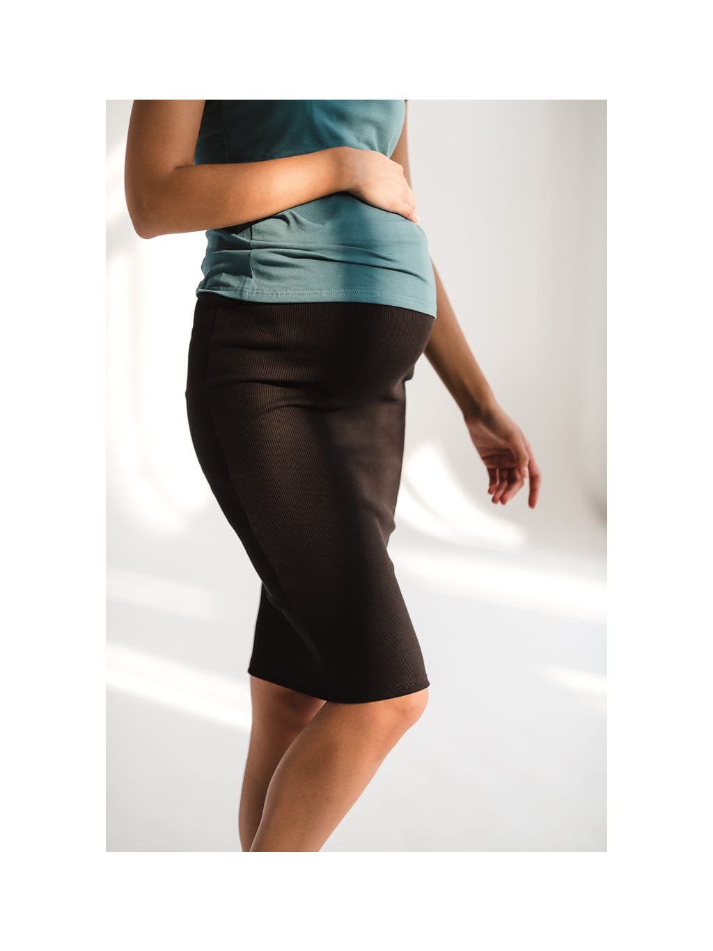 Žebrovaná těhotenská sukně Tummy černá bavlněná